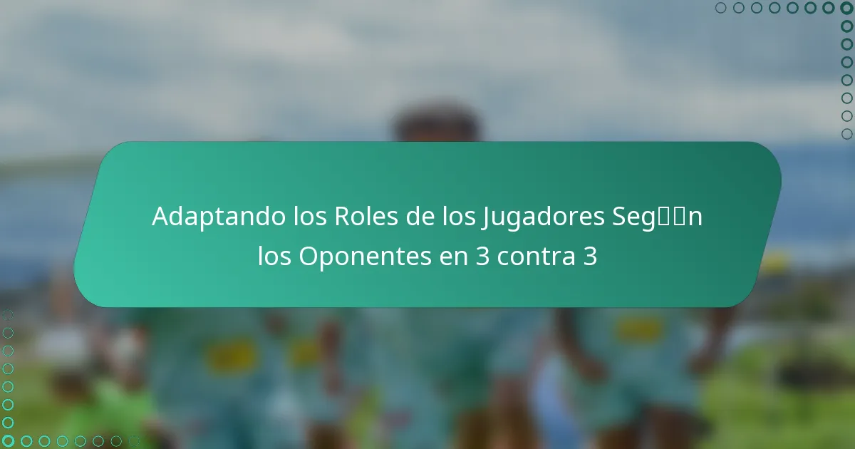 En los juegos de tres contra tres, la división de los roles de los jugadores en defensores, mediocampistas y delanteros es crucial para la estrategia del equipo. Adaptar estos roles según las fortalezas y debilidades de los oponentes permite a los equipos mejorar su rendimiento y aumentar sus posibilidades de éxito. Al analizar el estilo de juego del equipo contrario, los jugadores pueden hacer ajustes informados a sus tácticas, asegurando que respondan de manera efectiva a los diversos desafíos en el campo.