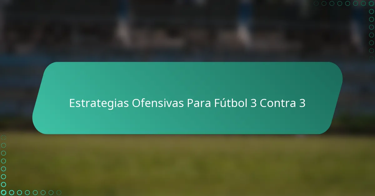 Las estrategias ofensivas clave para el fútbol 3 contra 3 se centran en maximizar el espacio, crear sobrecargas de jugadores e implementar técnicas de pase rápido. Estos enfoques son esenciales para superar a los defensores y encontrar posiciones óptimas de anotación durante el juego.