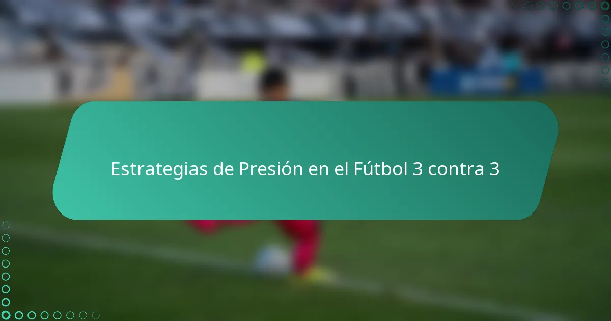 Las estrategias de pressing efectivas en el fútbol 3 contra 3 se centran en maximizar la presión sobre el portador del balón mientras se minimiza el espacio para los oponentes. El pressing alto, el contra-pressing y los ajustes zonales son tácticas esenciales que pueden influir significativamente en el resultado del juego.